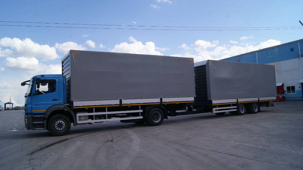 При транспортировке груз ни за что не выпадет, благодаря особенно широким бортам. От внешнего негативного воздействия он защищен прочными тентами.