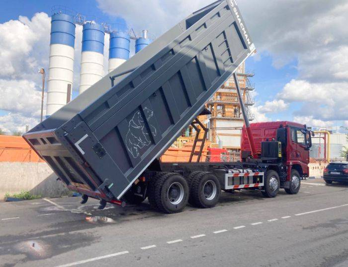 Самосвал SHACMAN X5000 8x4 WEICHAI 430 л.с. — мощный и надежный вместительный самосвал для серьезных задач, будь то масштабная стройка, дальняя перевозка сыпучих материалов или иные ситуации. Номинальная грузоподъемность модели составляет внушительные 41 000 кг. Собственная масса самосвала в снаряженном состоянии —19500 кг. Кузов прочный и дополнительно усилен ребрами жесткости.