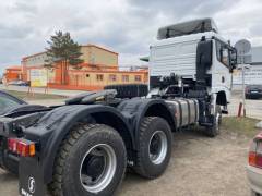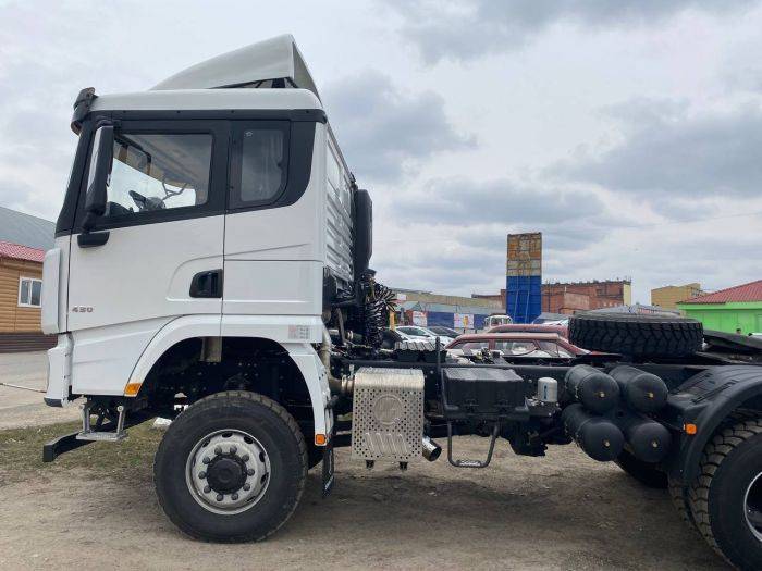 ТЯГАЧ SHACMAN X5000 6х6 WEICHAI 430 л.с. — это популярная модель тягача от крупного завода Shaanxi, официальным дилером которого на территории России является компания РУСИМПОРТЛИДЕР. Модель базируется на колёсной формуле 6х6. Это означает, что в наличии три ведущие оси, благодаря чему вы сможете быть уверены в замечательной проходимости транспорта даже в сложных и нестандартных условиях. Сам тягач весит всего 9400 кг в снаряженном виде, плюс обладает внушительной грузоподъёмностью, достигающей 35 500 кг. Есть возможность перевозить даже тяжёлые грузы, причём делать это со скоростью, достигающей 90 км/ч. «Сердце» грузового автомобиля, позволяющее ему достигать таких внушительных результатов — это зарекомендовавший себя как очень надёжный Weichai WP12.430E50, 4-х тактный 6-ти цилиндровый рядный вертикальный дизель с жидкостным охлаждением, а также прямым впрыском, интеркуллером и турбонадувом. Общая мощность мотора составляет 430 л.с., а рабочий объём — 11,6 см3. Дизайн продуман до мелочей, например, воздухозаборник располагается высоко за кабиной, что позволяет избежать попадания дорожной пыли, песка и прочих мелких элементов, минимизировать риски возникновения нежелательных засоров. Внутри комфортно даже в продолжительных поездках благодаря кабине X5000 MAN. Она оборудована максимально удобным седлом JOST 50, кондиционером, спальными местами, электрическим зеркалом заднего вида с подогревом и не только. Упрощают жизнь водителю круиз-контроль, многофункциональный руль и другие элементы комплектации. Подвеска модели является зависимой, рессорной, усиленной. Есть противооткатное устройство. Тягач оборудован 12-ти ступенчатой механической коробкой передач модели 12JSDX220TA-B, она имеет 12 передач вперёд и две — назад.