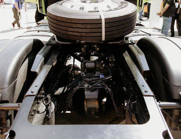 Модель базируется на колёсной формуле 4х2, которая позволяет грузовому автомобилю, несмотря на его масштабы, оставаться максимально устойчивым и маневренным в любых условиях.